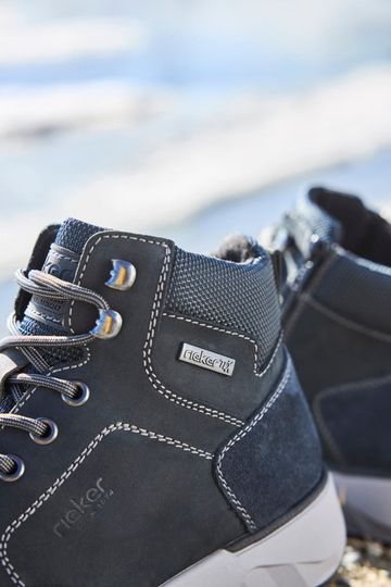 Pánský zimní kotník značky Rieker je ideální volbou pro muže, kteří hledají styl a komfort v chladných měsících. Tento model s funkční membránou a širokým střihem "H" je navržen tak, aby poskytoval maximální pohodlí a ochranu. Svršek z pevné nubukové kůže a broušené syntetiky zajišťuje odolnost, zatímco teplá podšívka z pravé ovčí vlny vás udrží v teple.