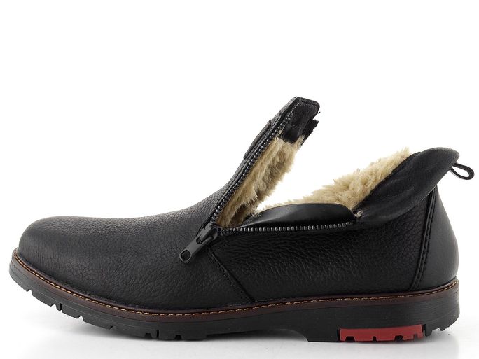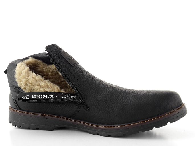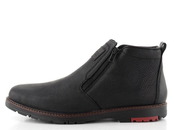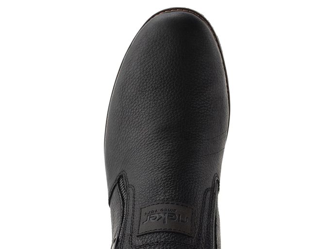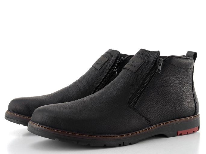 Pánský kožený kotník značky Rieker je ideální volbou pro podzimní a zimní období. Jeho komfortní střih s kulatou špičkou zajišťuje pohodlí během celého dne. Vyrobený z maštěné strukturované kůže, tento model v černé barvě nejen skvěle vypadá, ale také se snadno obouvá díky dvěma postranním zipům.