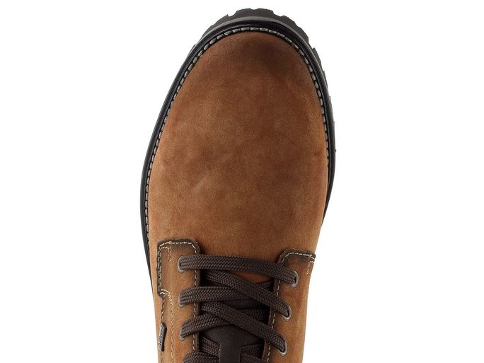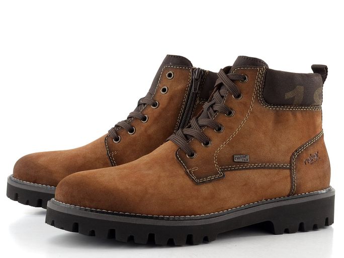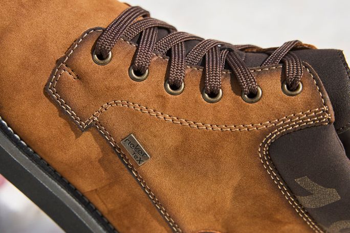 Kvalitní pánský vycházkový kotník značky Rieker je ideálním společníkem do chladných podzimních a zimních dnů. Jeho prostorný, kulatý střih H zaručuje pohodlí i pro širší chodidla. Svršek z broušené syntetiky v přírodní hnědé barvě s tmavě hnědými doplňky dodává botám elegantní vzhled.
