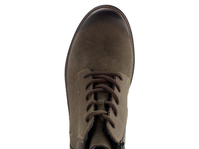 Díky šněrování s kulatými tkanicemi a funkčnímu zipu na vnitřní straně je obouvání snadné a rychlé. Silně polstrovaný kotníkový lem a teplejší filcová podšívka poskytují maximální pohodlí i při delším nošení. Vyjímatelná, měkká filcová stélka a bytelná latexová podešev s hrubým vzorkem zajišťují stabilitu a pohodlí na každém kroku. Tyto boty jsou vyráběny lepeným způsobem, což zaručuje jejich pevnost a odolnost. Model B3308-25 je skvělou volbou pro každého muže, který hledá stylovou a pohodlnou obuv pro chladnější měsíce.