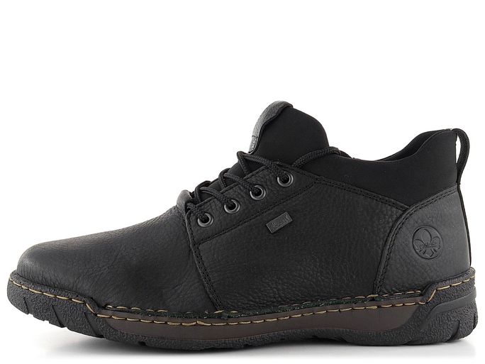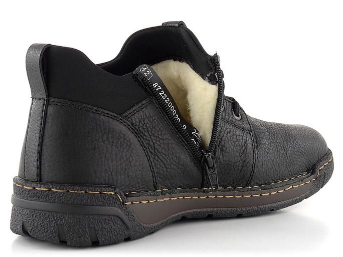 Stylové a funkční zimní kotníkové boty pro muže od značky Rieker. Tento model je ideální volbou pro chladné podzimní a zimní dny. Boty jsou navrženy tak, aby poskytovaly maximální pohodlí, a to díky extra širokému střihu, který je vhodný pro muže s širším typem chodidla. Svršek bot je vyroben z kvalitní strukturované kůže s maštěným efektem, což dodává botám elegantní vzhled. Kotníkový lem a jazyk jsou ze softshellové textilie, která pruží a zajišťuje pohodlné nošení.