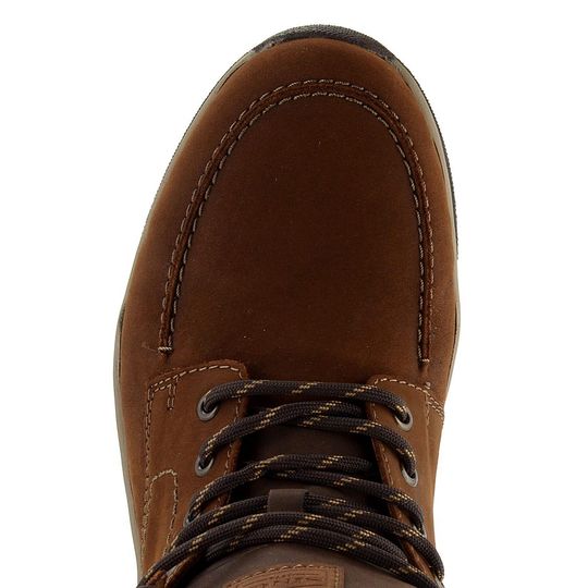 Pánský kotník s membránou od značky Rieker nabízí nejen styl, ale i maximální komfort pro podzimní a zimní sezónu. Tento model je ideální volbou pro muže s širším typem chodidla díky prostornému kulatému střihu. Svršek je vyroben z kombinace nubukové kůže a syntetiky, což zajišťuje odolnost a elegantní vzhled v oříškově hnědé barvě. Klasické šněrování doplněné kovovým háčkem a zip na vnitřní straně umožňují snadné obutí. Silně polstrovaný kotníkový lem a jazyk spolu s hustou vlněnou podšívkou a měkkou stélkou potaženou filcem poskytují teplo a pohodlí. Membrána riekerTEX® chrání před vlhkostí, zatímco bytelná vyšší podešev s hrubým vzorkem zajišťuje stabilitu na kluzkém povrchu. Výška kotníku je cca 10 cm (bez podešve), což nabízí dostatečnou ochranu a podporu.