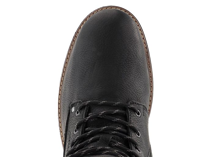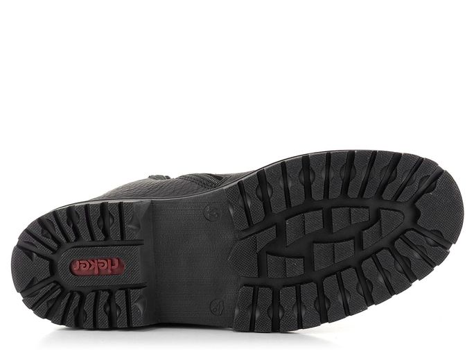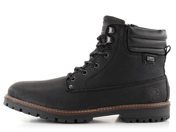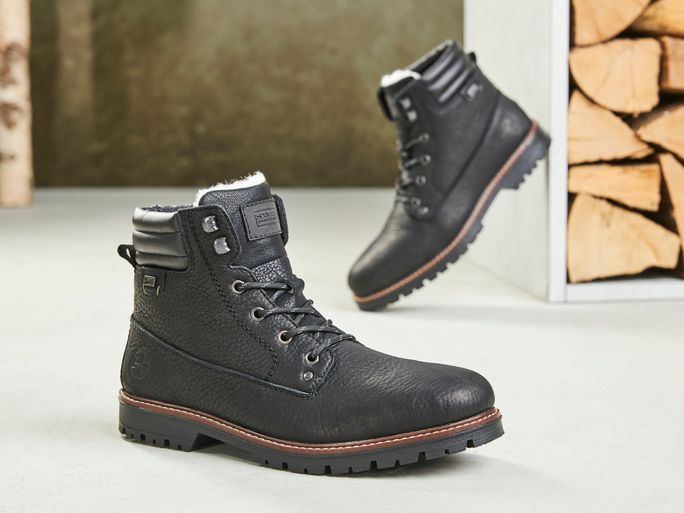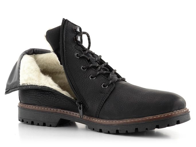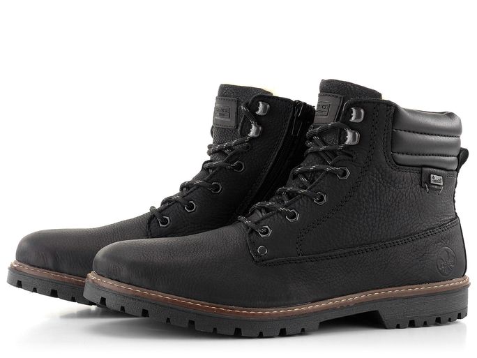 Vyzkoušejte bytelný pánský zimní kotník od značky Rieker, který je ideální pro chladné podzimní a zimní dny. Tento model v černé barvě kombinuje módní střih a pohodlné provedení. Svršek je vyroben ze strukturované, maštěné kůže a doplněn prošívanou kotníkovou bandáží ze syntetiky. Podšívka z velmi teplé vlněné střiže a extra měkká stélka s filcovým potahem zajistí maximální komfort. Díky postrannímu zipu je obutí snadné a rychlé. Funkční vodoodpudivá membrána riekerTEX® vás ochrání před vlhkostí. Flexibilní podešev s hrubým vzorkem zajišťuje stabilní krok. Výška kotníku je 13 cm (bez podešve). Tento model je kombinací šitého a lepeného výrobního způsobu, což zaručuje dlouhou životnost a odolnost. Investujte do kvality a komfortu s tímto stylovým kotníkem.
