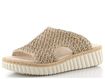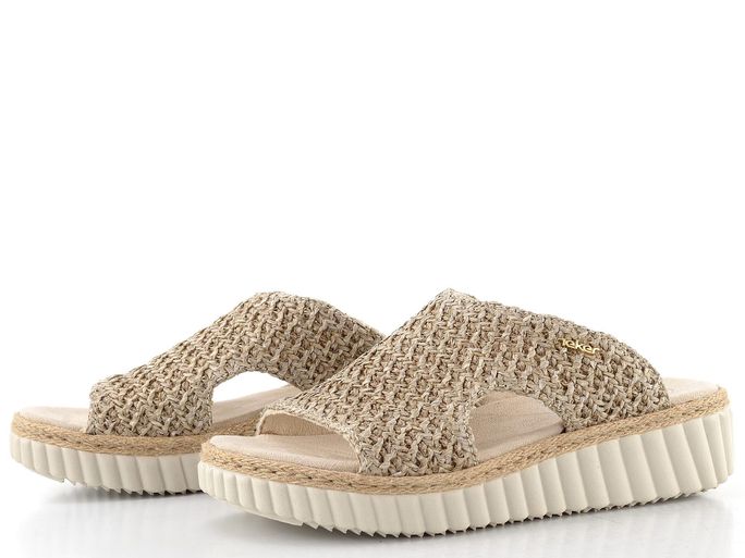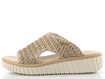 Dámské pantofle ze splétaného lýka, se širokým nártovým páskem a vyšší platformou s klínkem.