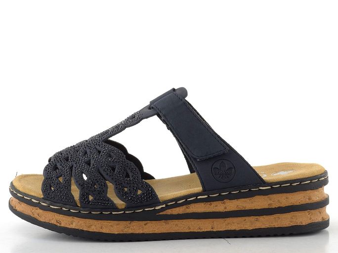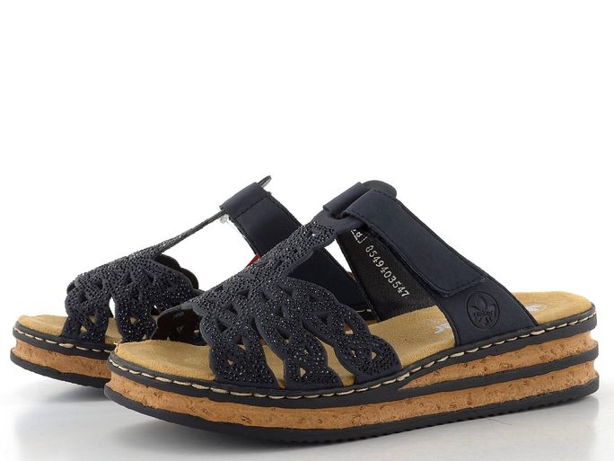 Rieker modré třpytivé pantofle na suchý zip62986-14