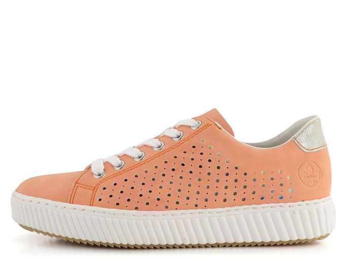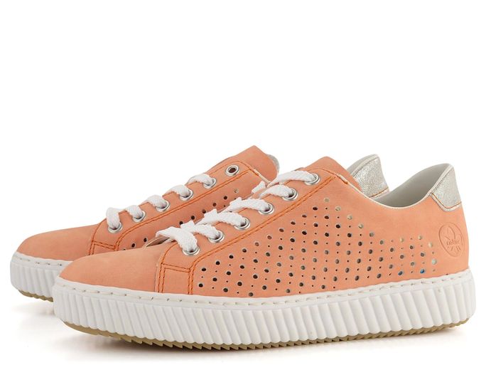Hledáte pohodlné a stylové boty na jaro a léto? Dámské polobotky od značky Rieker v meruňkově oranžové barvě jsou ideální volbou. Tyto tenisky nabízejí prostornou kulatou špičku a svršek z matné syntetiky, který je doplněn metalickým prvkem na patě. Perforace na bocích zajišťuje vynikající prodyšnost, takže vaše nohy zůstanou svěží i během teplejších dní.