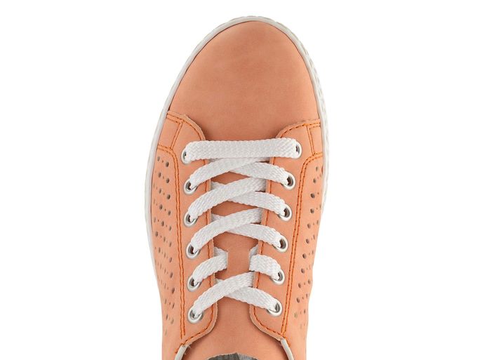 Dámské šněrovací polobotky v meruňkové barvě, s prořezávaným vzorem na svršku a vyjímatelnou stélkou.