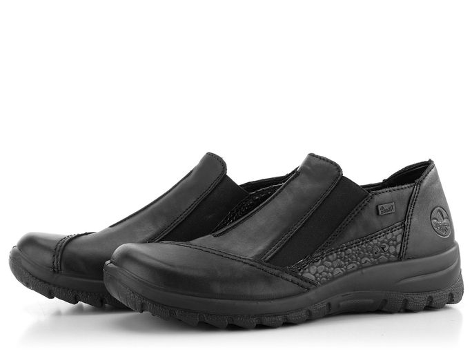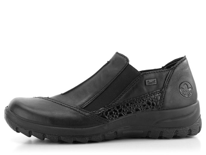 Dámské vycházkové polobotky od značky Rieker jsou ideální volbou pro podzim a zimu. Tyto boty kombinují hladkou kůži a syntetiku s hadinkovým vzorem, což jim dodává elegantní vzhled. Díky prostornému střihu s hranatější špičkou a pružinkám na nártu se snadno obouvají a poskytují maximální pohodlí. Černá barva je univerzální a hodí se k jakémukoliv outfitu. Boty jsou vybaveny vodoodpudivou membránou riekerTEX®, která chrání před vlhkostí. Podšívka je z prodyšné, mírně polstrované textilie, což zajišťuje komfort při nošení. Návrh doplňuje pohodlná podešev s mírným klínkem a stélka potažená hladkou kůží. Tento model je nevyteplený, což jej činí ideálním pro mírnější podzimní dny. Vyrobeno lepeným způsobem, což zaručuje dlouhou životnost. Výška podpatku je 4 cm.