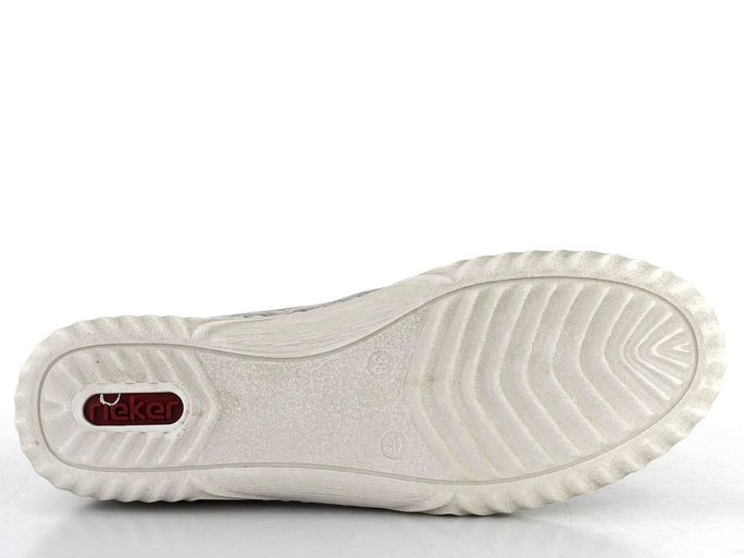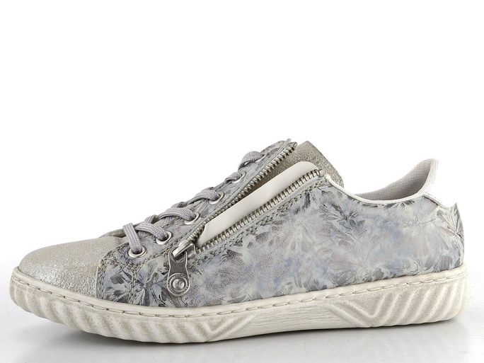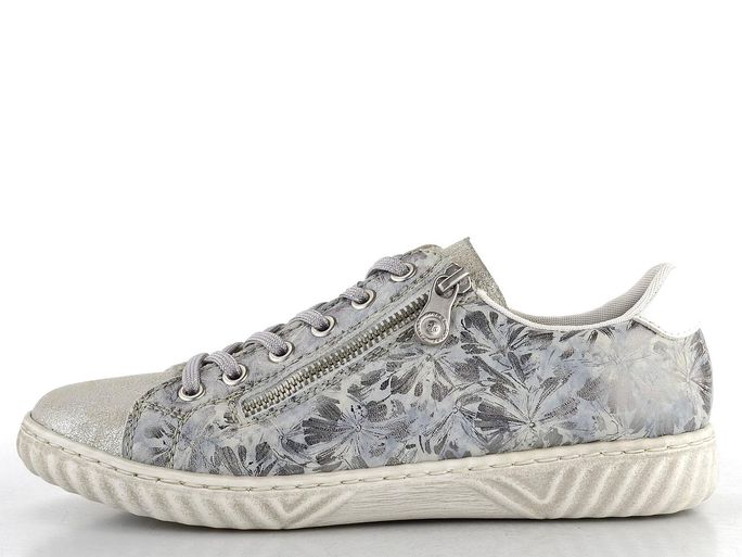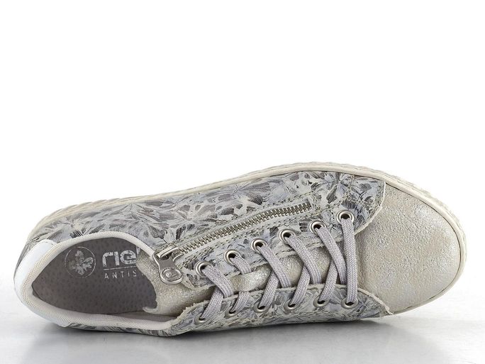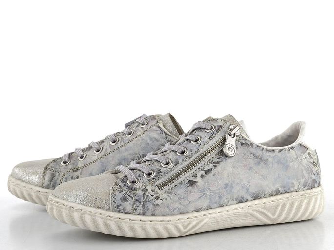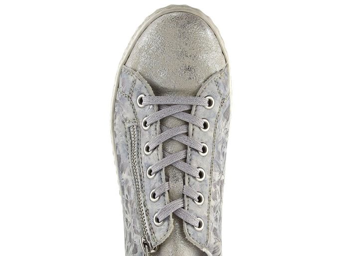 Dámské módní polobotky od značky Rieker představují ideální volbu pro ty, kteří hledají komfort a styl v jednom. Tyto boty v ležérním stylu nabízejí prostorný kulatý střih a kombinaci kůže a syntetiky, což zajišťuje jak eleganci, tak odolnost. Světle šedá barva s metalickým stříbrným potiskem dodává botám moderní vzhled, zatímco šněrování s kovovými očky a lurexovou nitkou přidává na sofistikovanosti. Funkční postranní zip usnadňuje obutí, a měkčená kožená stélka přináší pohodlí při každém kroku. Flexibilní latexová podešev s šedým zátěrem zaručuje pohodlnou chůzi. Tyto polobotky jsou perfektní volbou pro jarní a letní dny ve městě.
