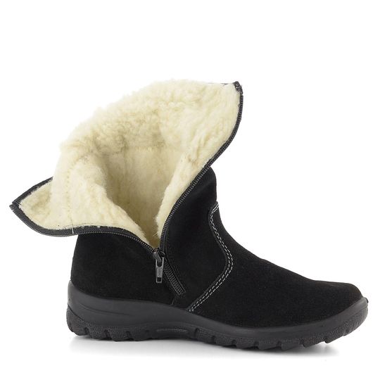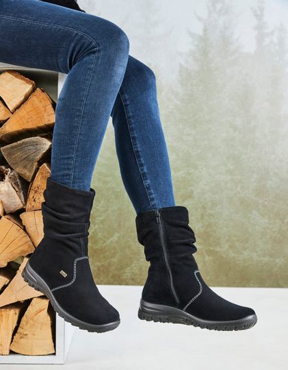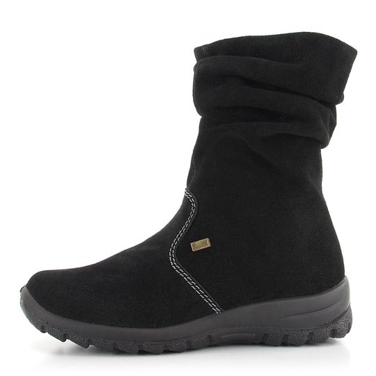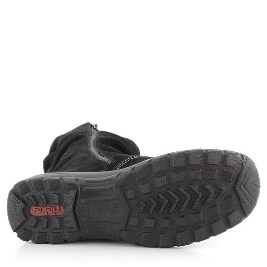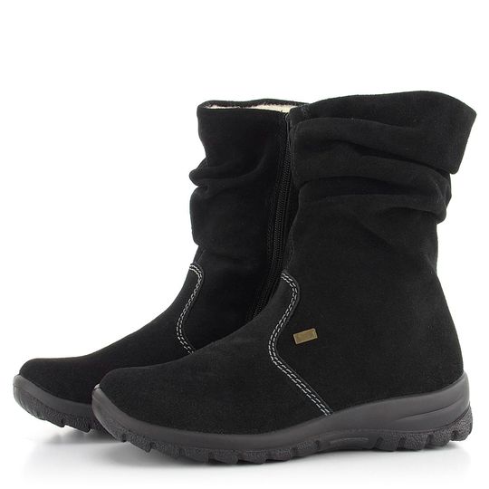 Dámské polokozačky značky Rieker jsou ideální volbou pro podzimní a zimní sezónu. Vyrobeny z kvalitní velurové kůže, která je nejen esteticky přitažlivá, ale také odolná díky vodoodpudivé membráně riekerTEX. Boty mají kulatý, prostorný tvar špičky, což zajišťuje pohodlí i při delším nošení. Postranní zip usnadňuje obutí a vyzutí, zatímco teplá podšívka z vlněné střiže vás udrží v teple i za chladnějších dnů. Kontrastní štepování a módní řasení v horní části dodávají botám stylový vzhled. Lehkou a flexibilní podešev oceníte při každodenním nošení. Výška podpatku je 4 cm, což poskytuje optimální stabilitu a komfort. Výška obuvi je 20 cm (bez podešve), což chrání vaše nohy před nepříznivým počasím. Tento model je lepený, což zajišťuje pevnost a dlouhou životnost. Vyberte si kvalitu a styl s těmito polokozačkami od značky Rieker.