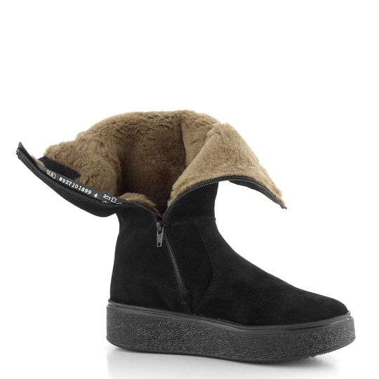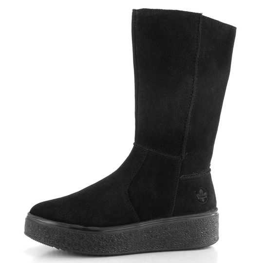 Dámské polokozačky od značky Rieker přinášejí komfort a styl pro podzimní a zimní sezónu. Tyto černé kozačky jsou vyrobeny z kvalitní semišové kůže a zaujmou pohodlným střihem s kulatou špičkou. Díky zipu na vnitřní straně a pružence se snadno obouvají a optimálně přizpůsobí obvod lýtka. Vnitřní podšívka z husté vlněné střiže a hebký kožíšek ve spodní části zajišťují teplo i v chladných dnech. Měkká filcová stélka a vysoká rovná latexová platforma s protiskluzovým vzorkem poskytují pohodlí a stabilitu. Výška podpatku je 4,5 cm, což dodává eleganci bez ztráty komfortu. Tyto boty jsou ideální pro ženy, které hledají spojení stylu a funkčnosti.