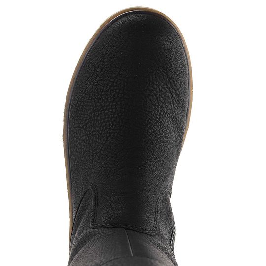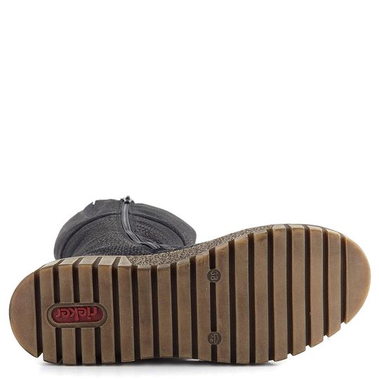 Hledáte pohodlné a stylové boty pro chladnější měsíce? Dámské komfortní polokozačky od značky Rieker v černé barvě jsou ideální volbou pro podzim a zimu. Tyto boty nabízejí pohodlný střih s kulatější špičkou a jsou vyrobeny z kvalitního strukturovaného syntetického materiálu. Uvnitř najdete hustou podšívku střižní textilie, která udrží vaše nohy v teple. Stélka je potažena melírovaným filcem pro extra komfort. Výška obuvi je 27 cm (bez podešve), což poskytuje dostatečnou ochranu před chladem. Boty jsou lepeny na vyšší latexové podešvi s klínkem, která zajišťuje dobrou tepelnou izolaci. V lýtkové části je všitá pruženka pro lepší přizpůsobení. S těmito polokozačkami budete připraveni na každé dobrodružství, ať už ve městě nebo na lehké procházce venku.