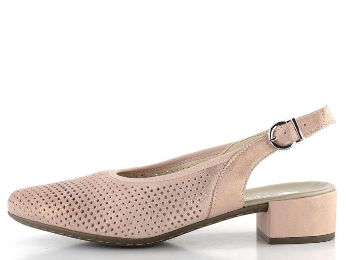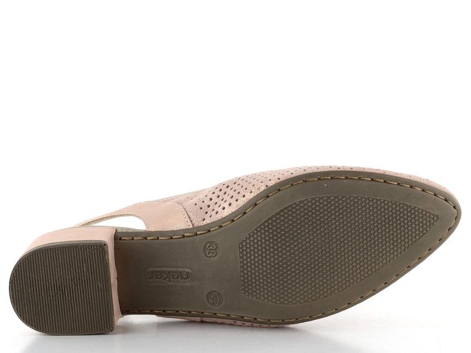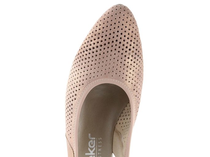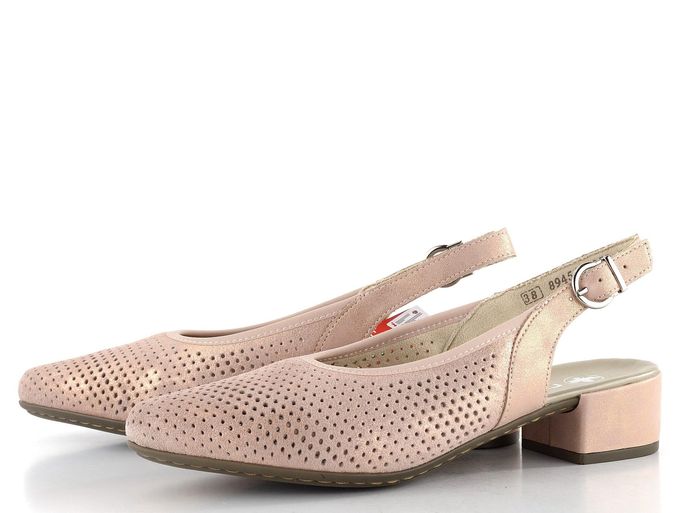 Dámské lodičky od značky Rieker přinášejí kombinaci elegance a komfortu, ideální pro jarní a letní dny. Tyto lodičky mají otevřenou patu a ozdobnou perforaci, která nejen že vypadá skvěle, ale také zajišťuje příjemné odvětrávání. Svršek z broušené kůže v jemném růžově zlatém odstínu s metalickým leskem dodává botám luxusní vzhled. Stabilní podpatek vysoký 3,8 cm poskytuje pohodlí i při delším nošení. Měkká stélka a patní pásek s pruženkou zajistí, že se budete cítit skvěle po celý den. Tento model je ideální volbou pro ženy, které hledají stylovou a zároveň pohodlnou obuv pro každodenní nošení.