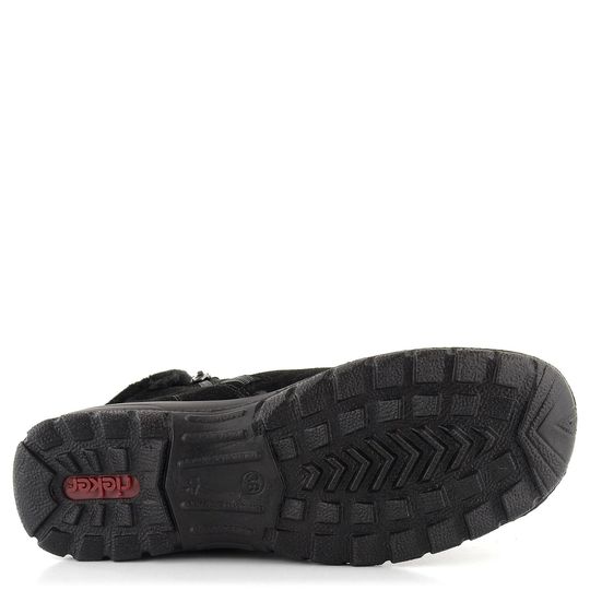 Uvnitř bot najdete teplou podšívku z umělého beránka a stélku potaženou filcem, což zaručuje maximální komfort. Díky vodoodpudivé membráně riekerTEX® zůstanou vaše nohy v suchu i v nepříznivém počasí. Lehká syntetická podešev s protismykovým vzorkem poskytuje stabilitu na jakémkoli povrchu. Výška podpatku je 4 cm, což dodává botám elegantní vzhled a zároveň pohodlí při chůzi.