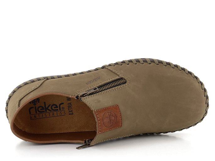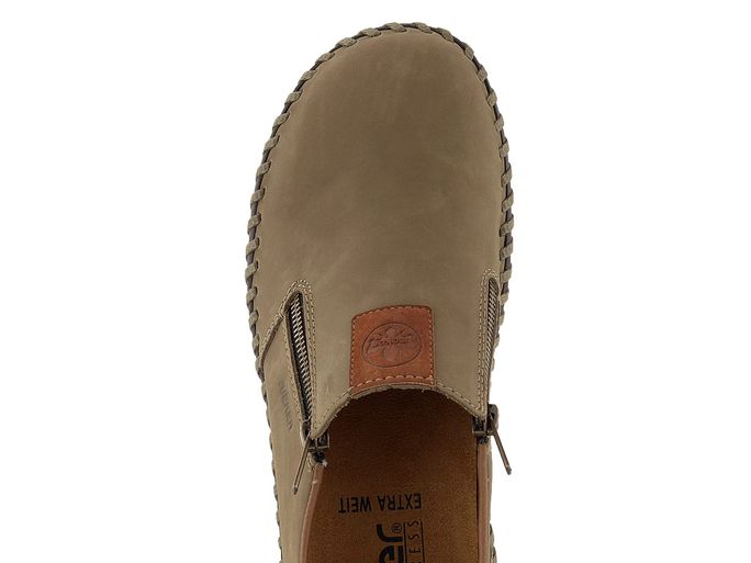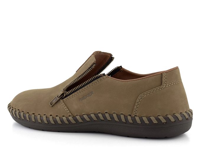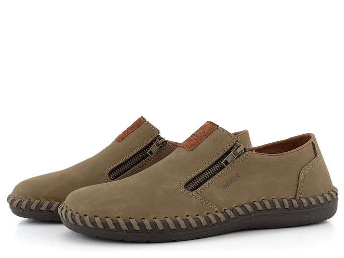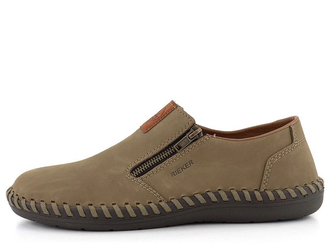 Pánské nazouvací polobotky od značky Rieker jsou ideální volbou pro jaro a léto. Tyto mokasíny v zemitě béžové barvě jsou vyrobeny z kvalitní nubukové kůže, která zajišťuje elegantní vzhled a pohodlí. Díky extra širokému střihu jsou vhodné i pro širší typ chodidla. Kulatá špička a funkční postranní zipy umožňují snadné obutí i vyzutí. Vnitřní podšívka je kombinací textilie a syntetiky, což zvyšuje komfort při nošení. Vyjímatelná stélka potažená broušenou textilií přidává na pohodlí. Boty jsou šité, což zaručuje flexibilitu, avšak doporučujeme je používat především v suchém prostředí a pravidelně impregnovat pro zvýšení odolnosti vůči vlhku. Podešev z latexu dodává botám lehkost a pružnost. Model B2458-64 je skvělou volbou pro každodenní nošení do města či kanceláře.