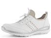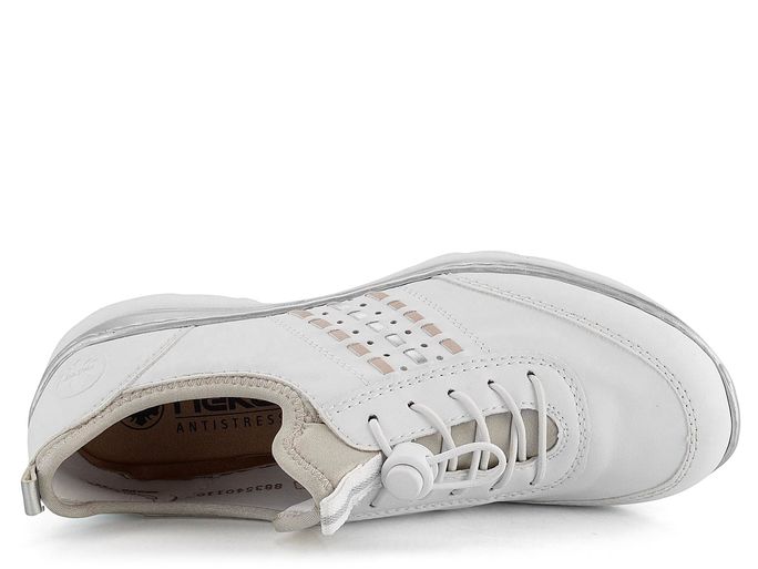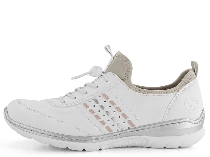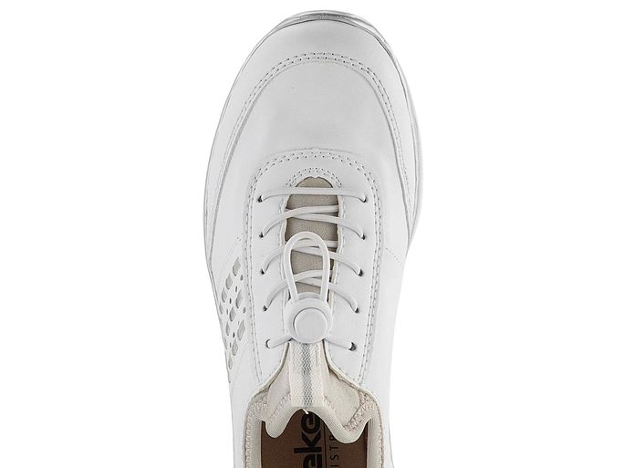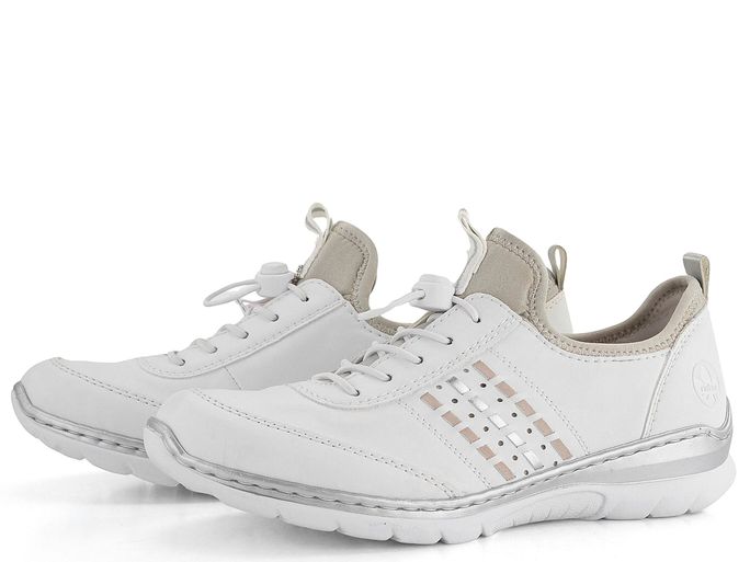 Dámské bílé prozouvací polobotky od značky Rieker jsou ideální volbou pro jarní a letní sezónu. Tento model kombinuje elegantní design s maximálním komfortem. Polobotky jsou vyrobeny ze syntetického materiálu s textilním jazykem, což zajišťuje lehkost a prodyšnost. Místo tradičního šněrování zde najdete praktickou gumičku s dotahováním na olivku, která usnadňuje obouvání.