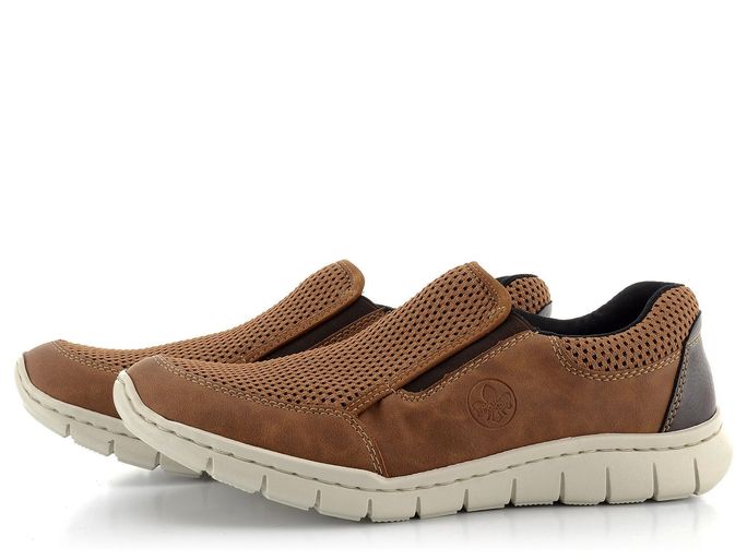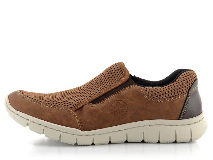 Hledáte pohodlné a stylové polobotky pro jarní a letní sezónu? Pánský model od značky Rieker je ideální volbou. Tyto prozouvací polobotky v světle hnědém odstínu (lehce do rezavé) se snadno obouvají díky postranním pružinkám, což šetří váš čas. Svršek je vyroben z kombinace syntetiky a textilie, což zajišťuje odolnost a prodyšnost. Měkká textilní podšívka a vyměkčená stélka potažená textilií poskytují maximální komfort při nošení. Syntetická podešev s projmutou špičkou a šitý výrobní způsob zaručují dlouhou životnost a pohodlí. Šířka G je vhodná pro standardní šířku nohy. Tento model z ročníku 2021 je skvělou volbou pro každodenní nošení do města, kanceláře nebo na lehkou procházku. Nechte se okouzlit kvalitou a pohodlím značky Rieker.