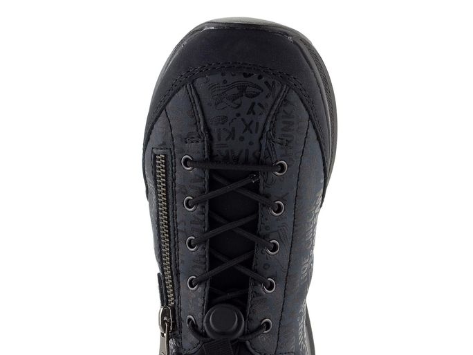 Dopřejte si komfort a styl s dámskými polobotkami značky Rieker. Tyto tmavě modré boty jsou ideální pro podzimní a zimní sezónu. Díky prostornému kulatému střihu a označení "extra wide" jsou vhodné pro širší typ chodidla. Svršek kombinuje matnou syntetiku a pružnou softshellovou textilii, což zajišťuje pohodlí a flexibilitu. Na nártu najdete pružnou gumičku s možností utažení a ozdobný zip. Vnitřní měkká softshellová podšívka a paměťová pěna ve stélce poskytují maximální pohodlí, podporu nožní klenby a zesílenou patu. Lehká syntetická podešev s hrubým vzorkem zaručuje stabilitu a odolnost. Vyberte si kvalitu a pohodlí s botami od značky Rieker.