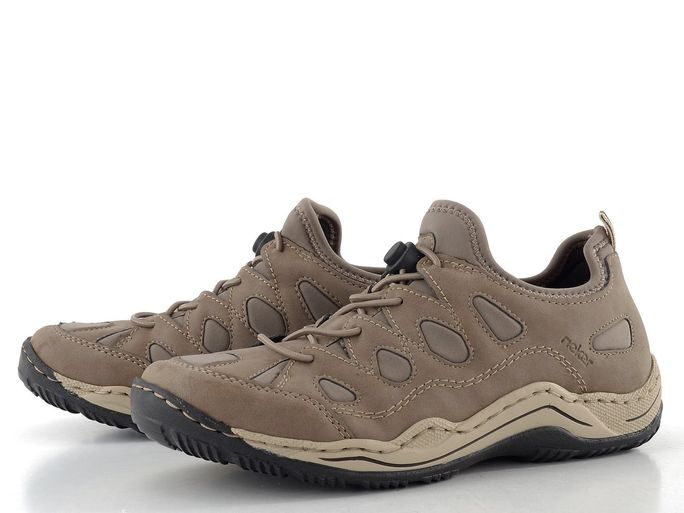 Komfortní dámské vycházkové polobotky od značky Rieker jsou ideálním společníkem pro jarní a letní dny. Tyto prozouvací tenisky v elegantním tmavším béžovém odstínu se šedým nádechem kombinují matnou syntetiku a textílii, což zajišťuje nejen styl, ale i pohodlí.