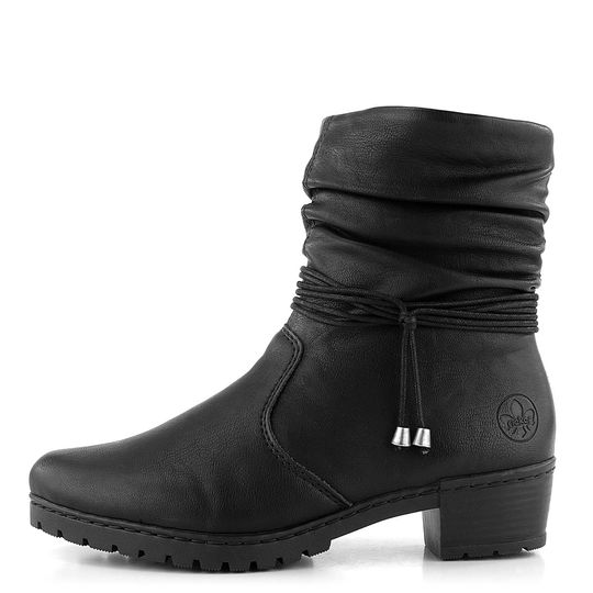 Dámské kotníkové boty od značky Rieker přinášejí eleganci a pohodlí pro podzimní a zimní sezónu. Tento model se vyznačuje elegantním řasením na horní části, což dodává botám stylový vzhled. Svršek je vyroben z hladké syntetiky s jemnou strukturou, která imituje kůži, a má černou barvu, což zajišťuje snadnou kombinovatelnost s různými outfity.