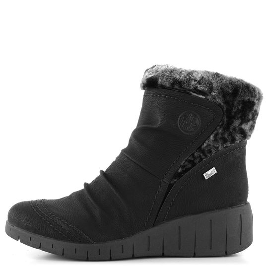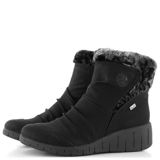Pro ženy, které hledají stylovou a pohodlnou obuv na podzim a zimu, jsou tyto kotníkové boty na klínku od značky Rieker ideálním řešením. Vyrobeny z pevné syntetiky a textilie, tyto boty zaujmou nejen svým elegantním černým designem, ale i praktickými vlastnostmi. Hebká kožešinka v černo-šedo-stříbrném melírovaném provedení dodává botám luxusní vzhled a zároveň zajišťuje teplo. Díky postrannímu zipu je obutí snadné a rychlé.