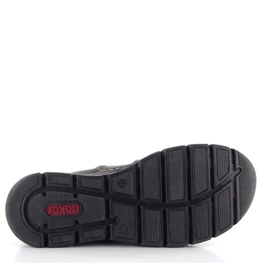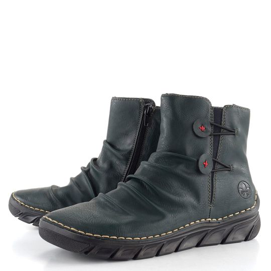 Vstupte do podzimní a zimní sezóny stylově s kotníkovými botami od značky Rieker. Tyto dámské kotníkové boty v tmavě zeleném odstínu s jemnou strukturou syntetického materiálu a světlým štepováním jsou ideální volbou pro každodenní nošení. Boty mají prostorný kulatý střih, který je vhodný pro standardní až mírně širší typ chodidla. Na vnitřní straně se nachází zip pro snadné obutí, zatímco vnější strana je vybavena pružnou vsadkou s ozdobnými gumičkami. Řasení na nártu dodává botám ležérní vzhled. Uvnitř najdete teplejší filcovou podšívku a extra měkkou stélku s filcovým potahem, které zaručují maximální pohodlí. Flexibilní syntetická podešev a lehká šitá konstrukce poskytují výjimečný komfort při chůzi. S výškou podpatku 3,5 cm jsou tyto boty perfektní volbou pro každodenní nošení v chladnějších měsících.