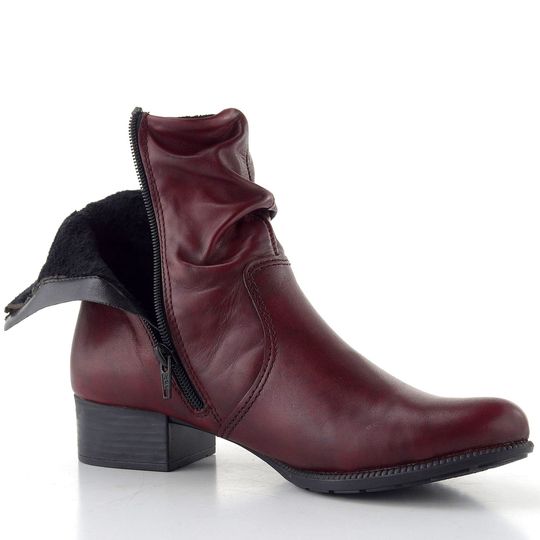 Pohodlný dámský řasený kotník z hladké kůže, s teplým vnitřkem a dvěma zipy pro snadné obutí.
