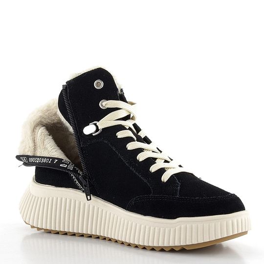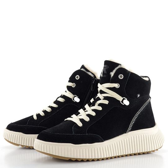 Hledáte stylové a pohodlné boty na podzim a zimu? Kotníkové boty značky Rieker Revolution v černé barvě z modelové řady W1771-00 jsou ideální volbou. Tyto boty kombinují trendy módní střih s praktickými prvky, jako je svršek ze zabroušené kůže a měkčený lem z umělé kožešinky, který drží kotník a udržuje teplo uvnitř obuvi. Šněrování s plochými tkanicemi a vnitřní zip zajišťují snadné obutí. Vyjímatelná stélka s extra vyměkčenou patní částí a vysoká platforma s latexovým protiskluzovým vzorkem zaručují maximální komfort a bezpečnost. Výška kotníku je 9,5 cm (bez podešve), což poskytuje dostatečnou oporu a ochranu. Tyto boty jsou ideální pro městské prostředí i lehké procházky venku. Přidejte si tento elegantní a praktický kousek do svého podzimního a zimního šatníku!