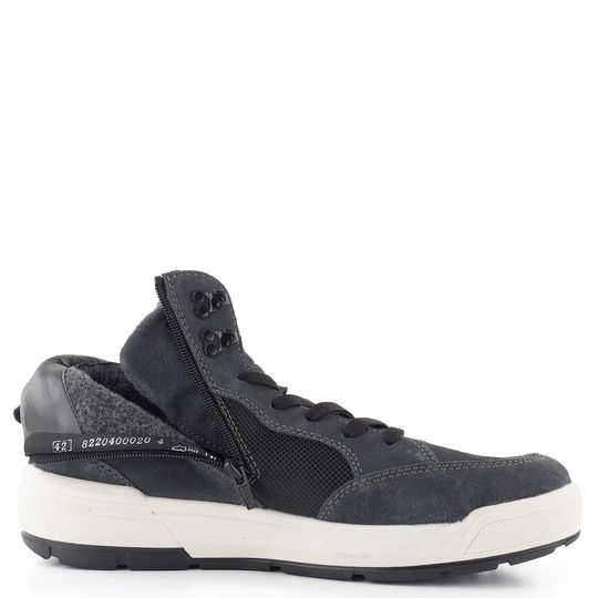 Šněrovací pánský kotník v tmavě šedé barvě, s teplou podšívkou a funkční vodoodpudivou membránou.