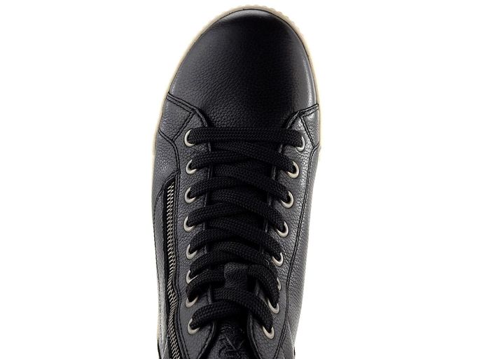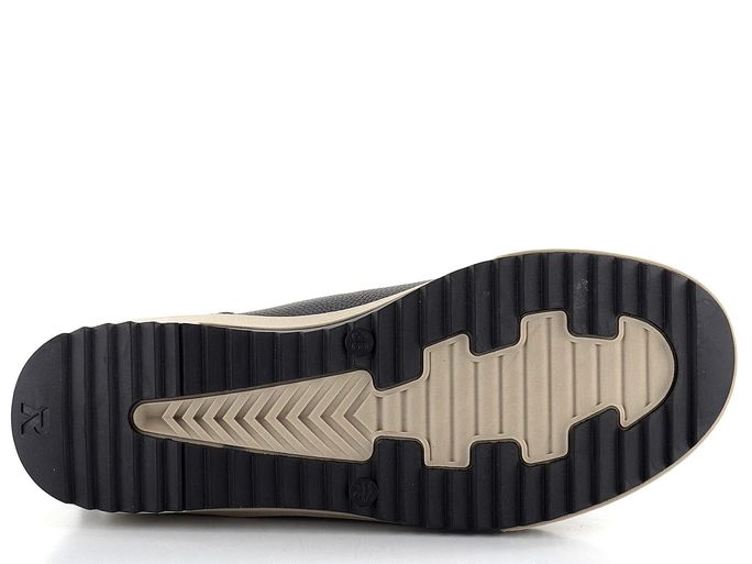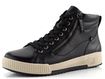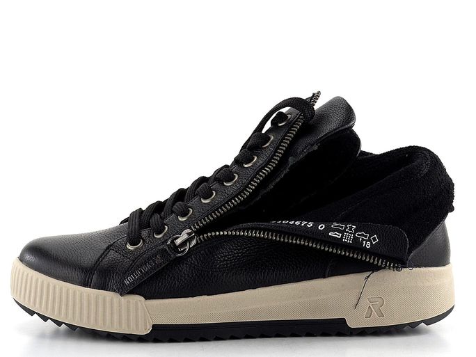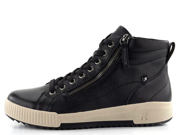 Stylové dámské kotníkové boty od značky Rieker Revolution jsou ideální volbou pro podzimní a zimní sezónu. Tyto vyšší uzavřené boty v černé barvě se vyznačují strukturou kůže a pohodlným střihem do kulaté špičky. Díky šněrování s kovovými očky a plochými tkanicemi, spolu se zipem na vnitřní straně, je obutí snadné a rychlé. Polstrovaný jazyk a prošívaný kotníkový lem zajišťují maximální pohodlí. Uvnitř boty najdete textilní podšívku podloženou slabým molitanem a měkkou vyjímatelnou stélku s podporou podélné nožní klenby a patním absorbérem. Vyšší latexová podešev s protiskluzovým vzorkem poskytuje stabilitu na různých površích. Výška kotníku je 9 cm (bez podešve), což přispívá k elegantnímu vzhledu a pohodlí při nošení. Lepený výrobní způsob zaručuje dlouhou životnost těchto kotníkových bot.