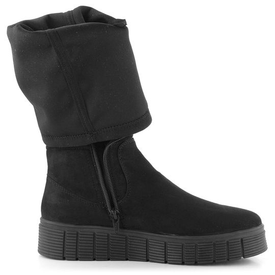 Kozačky mají kulatou špičku a svršek z broušené textilie, který je mírně pružný v lýtkové části. Díky zipu na vnitřní straně se snadno obouvají. Uvnitř najdete textilní podšívku s mírným zateplením a měkkou, vyjímatelnou stélku s pěnovým jádrem, která poskytuje extra pohodlí.