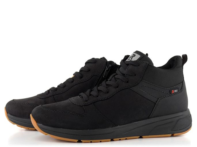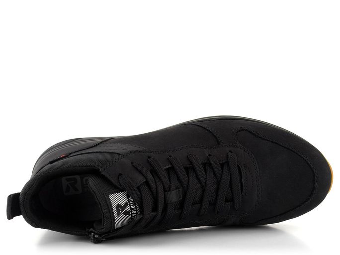 Pánské kotníkové tenisky značky Rieker z kolekce Revolution jsou ideální volbou pro podzimní a zimní sezónu. Tyto boty vynikají svou lehkostí, měkkostí a pružností, což zaručuje maximální pohodlí při každodenním nošení. Svršek je vyroben z kombinace nubukové kůže a textilie, což zajišťuje odolnost a stylový vzhled v černé barvě.
