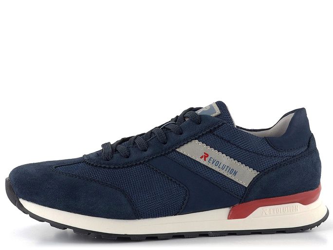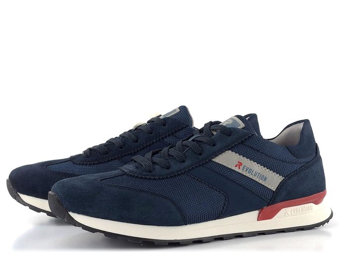 Velmi pohodlné a lehké tenisky v tmavě modré barvě od značky Rieker Revolution jsou ideální volbou pro moderního muže. Díky sportovnímu střihu a kombinaci semišové kůže a tkané textilie poskytují nejen stylový vzhled, ale i maximální komfort. Tmavě modrá barva je doplněna červenými a šedými detaily, což dodává botám elegantní vzhled.