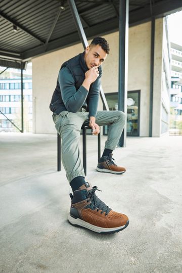 Boty jsou vybaveny vodoodpudivou membránou R-TEX® a odlehčenou podešví s hrubým vzorkem, která zajišťuje stabilitu na různých površích. Výška kotníku je cca 11 cm (bez podešve). Tento model je ideální volbou pro muže, kteří hledají stylovou a pohodlnou obuv pro každodenní nošení.