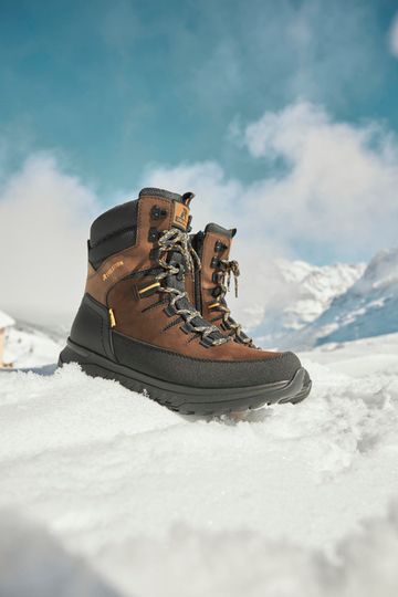 Šněrování s textilními průvlaky a kovovými háčky umožňuje snadné a pevné uchycení. Silně polstrovaný kotníkový lem a jazyk zajišťují, že boty netlačí a udrží teplo uvnitř. Teplá podšívka ze střižní ovčí vlny a vyjímatelná stélka s termoizolační fólií poskytují vynikající tepelnou izolaci.