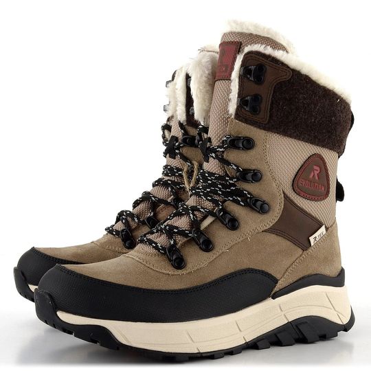 Teplé a komfortní dámské kotníkové boty od značky Rieker Revolution jsou ideální volbou pro podzimní a zimní sezónu. Tento sportovnější model pohorkového kotníku z nové produktové řady R-EVOLUTION vyniká svou lehkostí, měkkostí a pružností. Svršek bot je kombinací semišové kůže a nylonové textilie, zatímco špička je chráněna syntetikou.