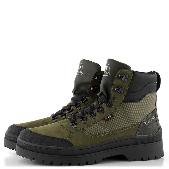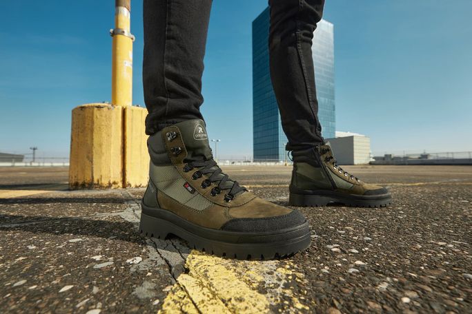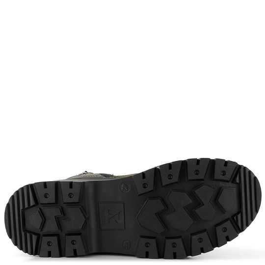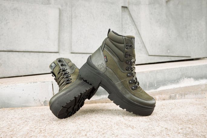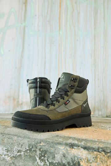 Olivově zelená barva s černými doplňky a pogumovanou špičkou přidává botám na atraktivitě. Šněrování s kovovými očky a horními háčky umožňuje snadné a pevné utažení. Pro ještě snadnější obutí je zde zip na vnitřní straně. Silně polstrovaný kotníkový lem a jazyk zajišťují extra komfort.