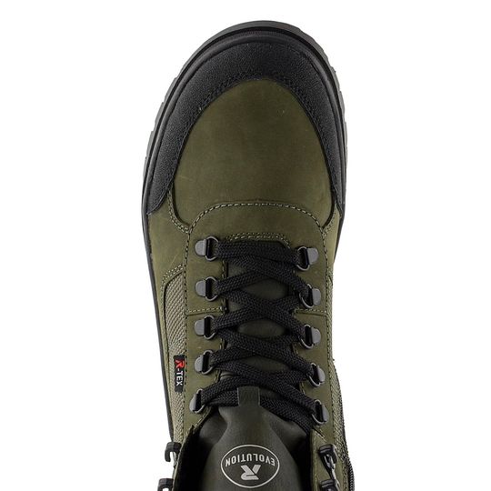 Pánský zimní kotník od značky Rieker Revolution je ideální volbou pro chladné podzimní a zimní dny. Tento model z nové produktové řady R-EVOLUTION je známý svou lehkostí, měkkostí a pružností, což zajišťuje maximální pohodlí při každodenním nošení. Svršek je vyroben z kombinace nubukové kůže, syntetiky a nylonové textilie, což dodává botě nejen stylový vzhled, ale i odolnost.