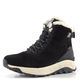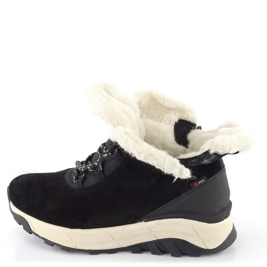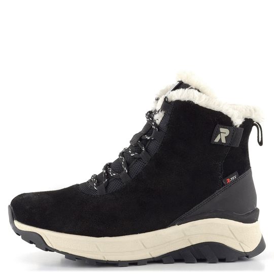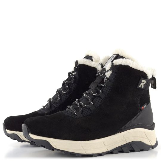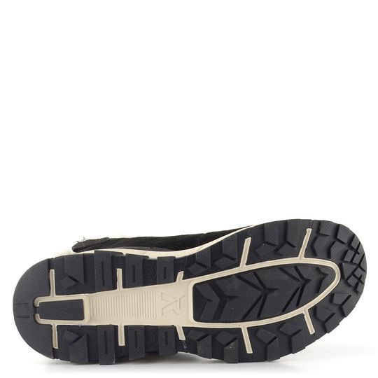 Pro chladné podzimní a zimní dny jsou tu kotníkové tenisky od značky Rieker, které nabízí nejen styl, ale také komfort. Tyto boty z kolekce Rieker Revolution jsou vyrobeny z kvalitní semišové kůže, doplněné o textilní a syntetické prvky, což jim dodává sportovní vzhled. Černá barva a hebká textilní kožešinka na kotníkovém lemu zajišťují elegantní vzhled. Díky vodoodpudivé membráně R-TEX® a teplé podšívce z vlněné ovčí střiže zůstanou vaše nohy v suchu a teple. Vyjímatelná pěnová stélka s termoizolační fólií a podporou podélné nožní klenby zajišťuje pohodlí při každém kroku. Výška podpatku je 4,5 cm a vyšší latexová podešev s hrubším dezénem poskytuje stabilitu. Reflexní prvek na jazyku a suché zipy na kotníku usnadňují obouvání a zvyšují bezpečnost. Tyto boty jsou ideální volbou pro každodenní nošení ve městě i na lehké procházky.