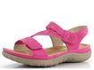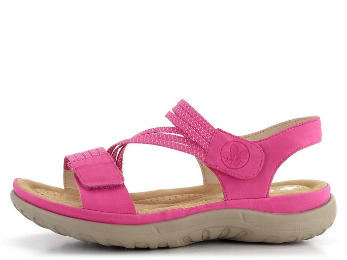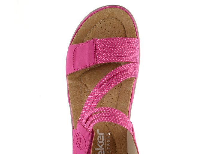 Vyzkoušejte velmi lehké, pohodlné a měkké sandály od značky Rieker, které jsou ideální pro jarní a letní dny. Tyto růžové páskové boty se pyšní kulatou špičkou, která kopíruje tvar prstů, a svrškem z matné syntetiky. Sytá růžová barva a žíhané pružné pásečky se přizpůsobí tvaru vašeho chodidla, což zaručuje maximální pohodlí. Přední a nártový pásek jsou upínané na suchý zip, což usnadňuje obouvání. Sandály mají příjemně měkkou a tvarovanou stélku, která spolu s velmi lehkou podešví zajišťuje, že je na noze téměř neucítíte. Výška podpatku je 3,5 cm, což poskytuje optimální rovnováhu mezi komfortem a elegancí. Tyto sandály jsou ideální volbou pro každodenní nošení do města, do kanceláře nebo na lehkou procházku.