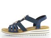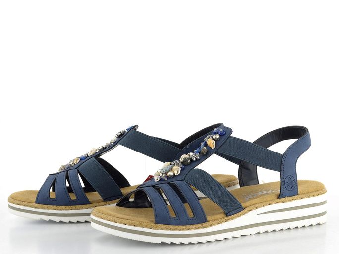 Zažijte pohodlí a styl s dámskými sandály od značky Rieker, které jsou ideální pro jaro a léto. Tyto páskové sandály v tmavě modré jeans barvě jsou nejen elegantní, ale i praktické díky pruženkám na obou stranách, které zajišťují snadné obutí. Svršek z matné syntetiky je doplněn nártem zdobeným bižuterními kamínky, korálky a mušličkami, což dodává sandálům jedinečný vzhled. Měkká stélka potažená broušenou textilií a pevná podešev na mírném klínku o výšce 3,5 cm zajišťují komfort při každém kroku. Tyto sandály jsou skvělou volbou pro ženy, které hledají kombinaci stylu a pohodlí v každodenní obuvi.