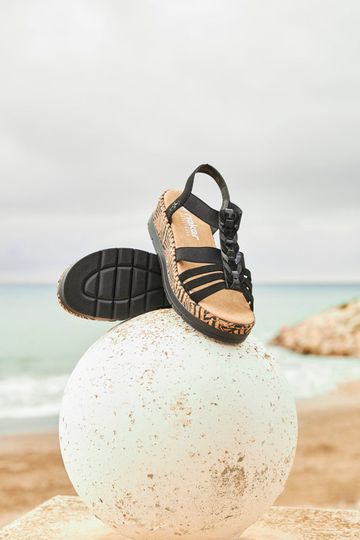 Představujeme dámské sandály na platformě od značky Rieker, které spojují eleganci a pohodlí. Tyto sandály v černé barvě jsou ideální volbou pro jarní a letní sezónu. Díky pruženkám na obou stranách je obutí rychlé a snadné, zatímco extra měkká stélka zajišťuje komfort při každém kroku. Svršek je vyroben z matné syntetiky, což zaručuje trvalou kvalitu a odolnost. Nárt je ozdobně splétaný z různých typů syntetiky, což dodává sandálům jedinečný vzhled. Vyšší korková platforma s klínkem nejen zvyšuje vaši výšku, ale také zajišťuje stabilitu a styl. Tyto sandály jsou ideální pro každodenní nošení i formální příležitosti.