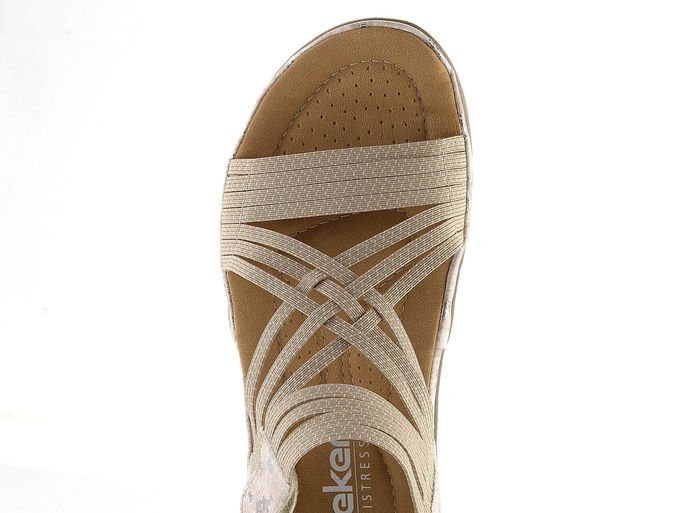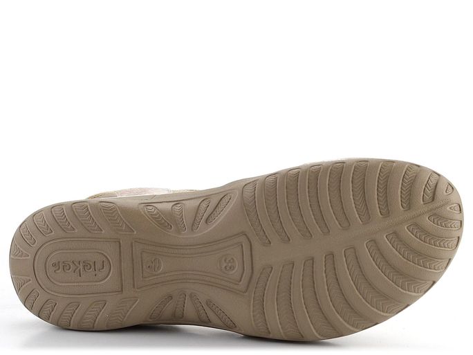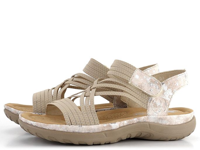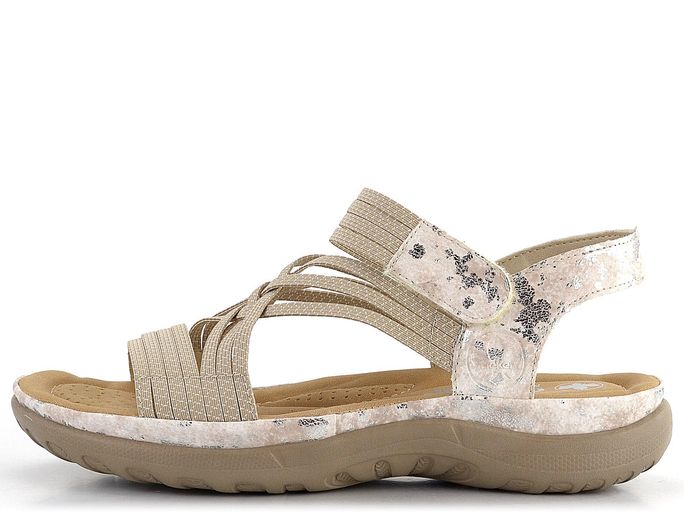 Hledáte pohodlné a stylové sandály pro jarní a letní dny? Sandály značky Rieker model 64888-60 jsou tou správnou volbou. Tyto sandály vynikají svou lehkostí a pohodlím, díky kterým je na noze téměř neucítíte. Svršek je vyrobený z hladké syntetiky a pruženek, což zaručuje flexibilitu a snadné obouvání. Elegantní metalická úprava v světle béžové barvě s jemným pudrovým nádechem a stříbrným potiskem dodává sandálům moderní vzhled.
