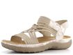 Velmi lehké dámské komfortní sandály v béžovo-stříbrném provedení, s pružnými pásky a zapínáním na suchý zip.