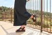 Dámské sandály s prořezávaným a blyštivým vzorem na nártu a s gumičkami pro snadné obutí.