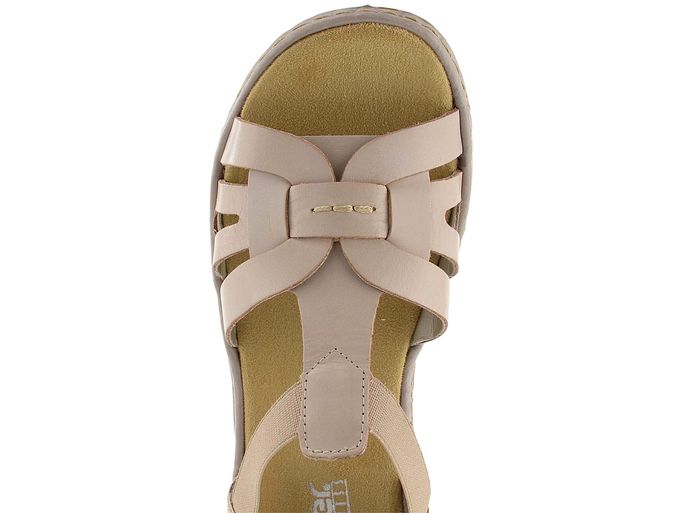 Dámské sandály značky Rieker jsou ideální volbou pro jarní a letní sezónu. Vyrobeny z hladké kůže v jemném béžovo-pudrovém odstínu, tyto sandály nejen skvěle vypadají, ale také poskytují maximální pohodlí. Propletené pásky elegantně zdobí nárt a dodávají botám unikátní vzhled. Díky širším gumičkám po stranách je obutí a nošení velmi pohodlné. Podšívka z hladké syntetiky a měkká stélka potažená broušenou textilií, která dobře saje vlhkost, zajišťují komfort po celý den. S výškou podpatku 3,5 cm jsou tyto sandály vhodné jak do města, tak na lehké procházky. Šitý výrobní způsob garantuje dlouhou životnost a kvalitu. Vyberte si kvalitu a styl od značky Rieker.