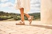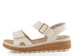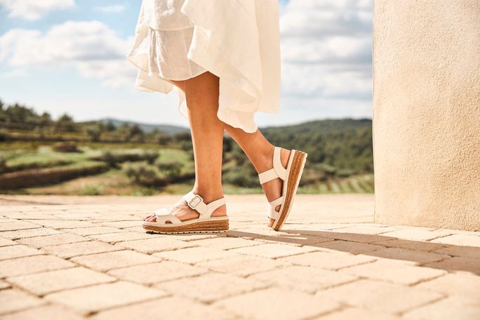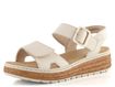 Dámské komfortní sandály v širším střihu, s upínacími pásky na suchý zip a vyšší podešví s klínkem.
