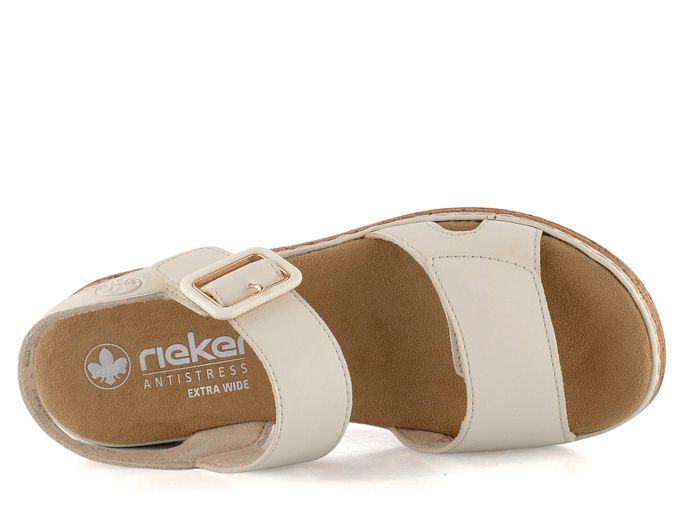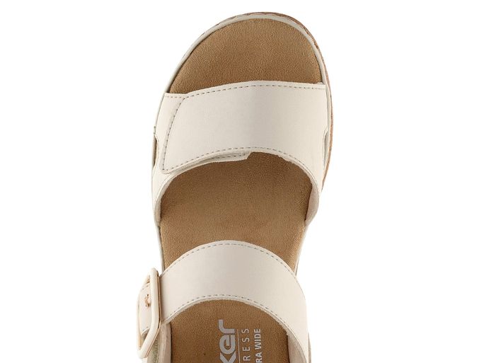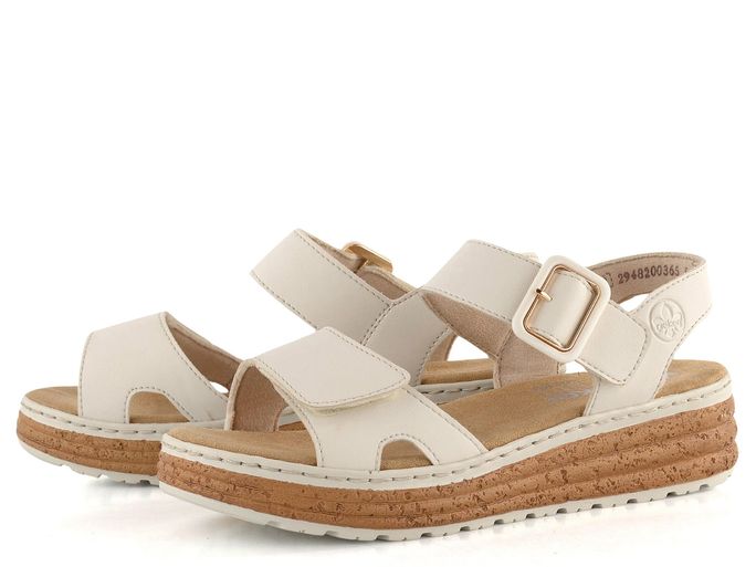Pohodlí a styl v jednom – to jsou sandály Rieker s variabilními pásky Porzellan 62760-60. Tyto prostorné sandály v krémové barvě jsou ideální volbou pro ženy hledající komfort během teplých jarních a letních dnů. Svršek z hladké syntetiky a měkce podložená textilní podšívka zajišťují příjemné nošení, zatímco pásky na suchý zip umožňují snadné přizpůsobení.