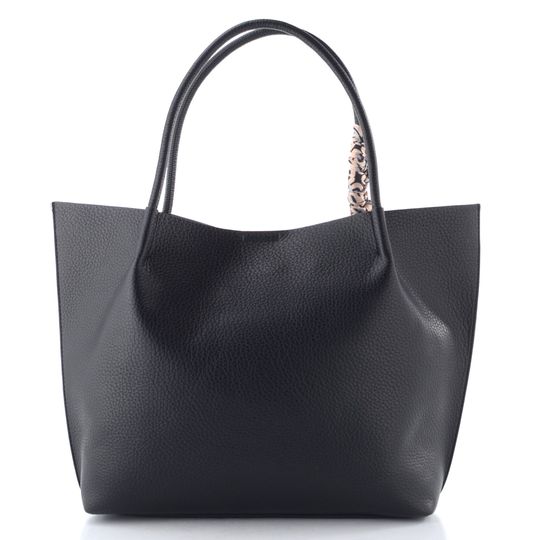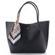 Jednoduchá a elegantní dámská shopper kabelka v černé barvě s ozdobnou barevnou stuhou a vnitřní samostatnou etují.
