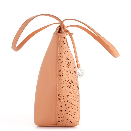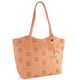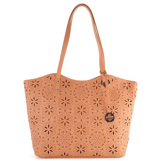 Elegantní shopper kabelka ve výjimečném odstínu meruňkové barvy od značky Rieker přináší nejen styl, ale i funkčnost. Díky prostornému střihu se do ní pohodlně vejde formát A4, což ji činí ideálním společníkem na každý den. Vyrobena z poddajné hladké syntetiky, je nejen odolná, ale i příjemná na dotek. Kabelka zaujme ozdobným propalovaným vzorem na přední straně a kováním ve stříbrné barvě, které dodává celkovému vzhledu nádech luxusu. Praktické vnitřní uspořádání zahrnuje zipovou kapsu na cennosti a dvě otevřené kapsičky na mobil či klíče. Madla na rameno s délkou přibližně 26 cm zajišťují pohodlné nošení. Rozměry kabelky jsou 40 cm na šířku, 27 cm na výšku a 11 cm hloubka dna, které je opatřeno kovovými opěrkami pro lepší stabilitu. Tento módní doplněk je perfektní volbou pro ty, kdo hledají spojení elegance a praktičnosti.